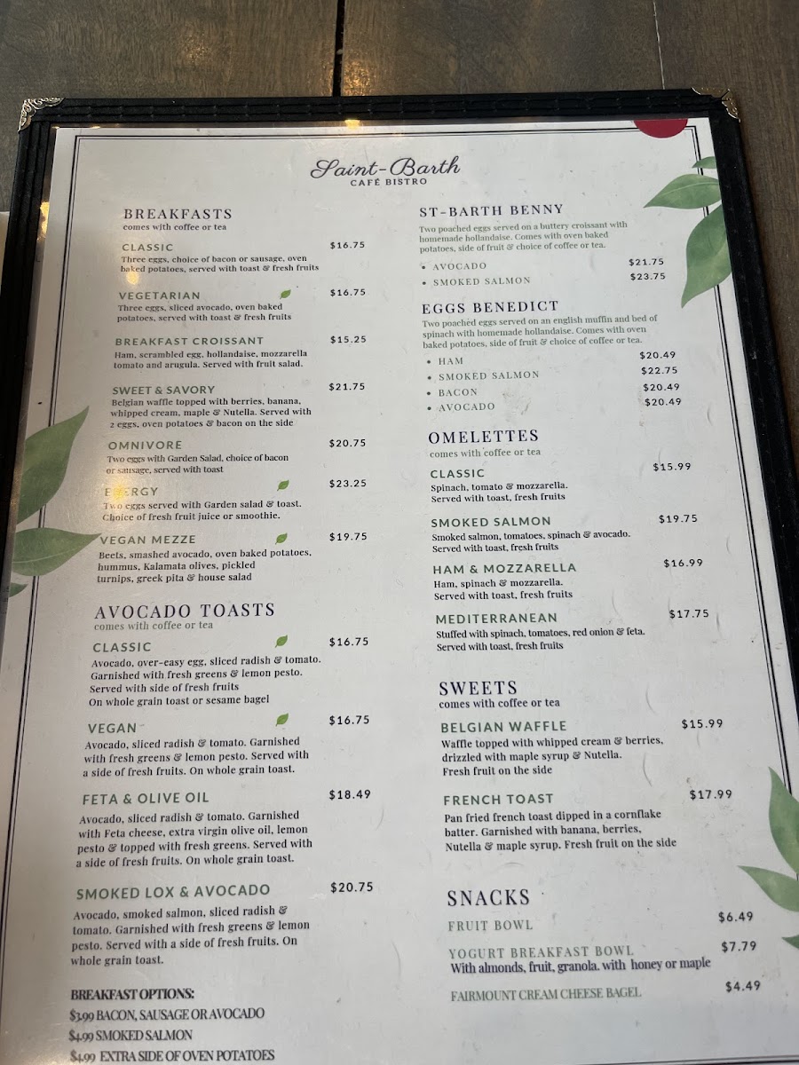 What truly stands out is the thoughtful inclusion of tea or coffee with brunch items, adding a perfect touch to your morning ritual. Whether you crave sweet or savory, each dish delivers freshness and care, from the flaky butter croissants to the innovative vegan options. Café St-Barth is more than a breakfast place; it’s a relaxing haven where quality and charm come together beautifully.